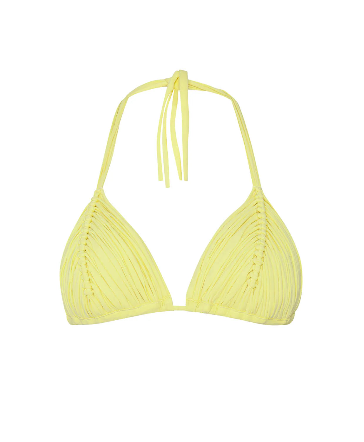 Our Isla Macramé Bikini Top, reimagined in a soft butter yellow for a sunlit update. This signature style blends simplicity with intricate craftsmanship, featuring expertly handwoven macramé detailing that elevates the classic triangle silhouette. Designed for a secure, flattering fit, it stays in place from mellow shoreline dips to golden hour swims.