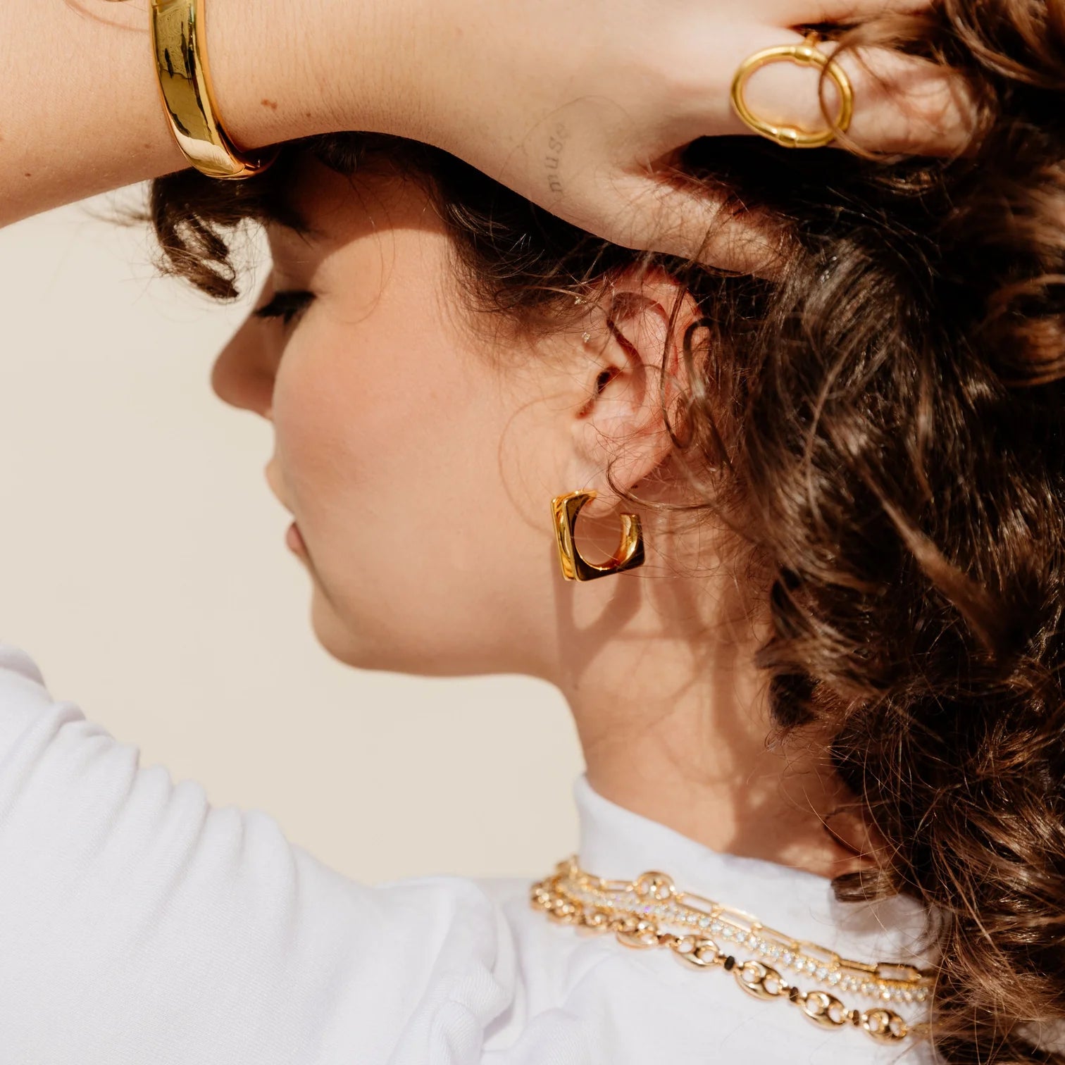 Make a statement in the Anita Hoop. Stand out from the rest when you wear these stunning unique squared hoops. A perfect everyday staple that can be worn with any outfit.