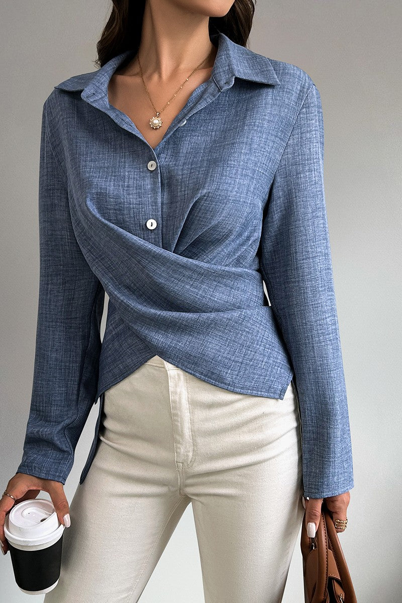 Material: 100% Polyester Features: Solid Cross Button Down Fit Long Sleeves Blouse Occasion: Casual/Daily/Outdoor/Vacation/School/Going Out. Style # OH2408TP400560