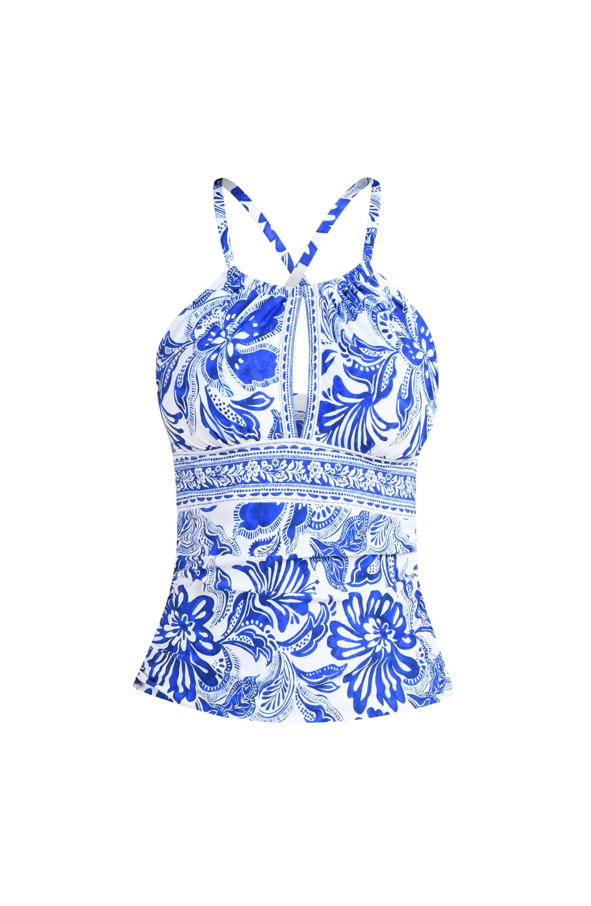 This Keyhole Tankini Top from our Botanical Brocade Collection features a striking deep-v keyhole to reveal just enough skin. The ruched bodice gives a slimming illusion to make your shape look its most amazing. With removable cups and adjustable, convertible straps, there are endless ways to customize your fit.