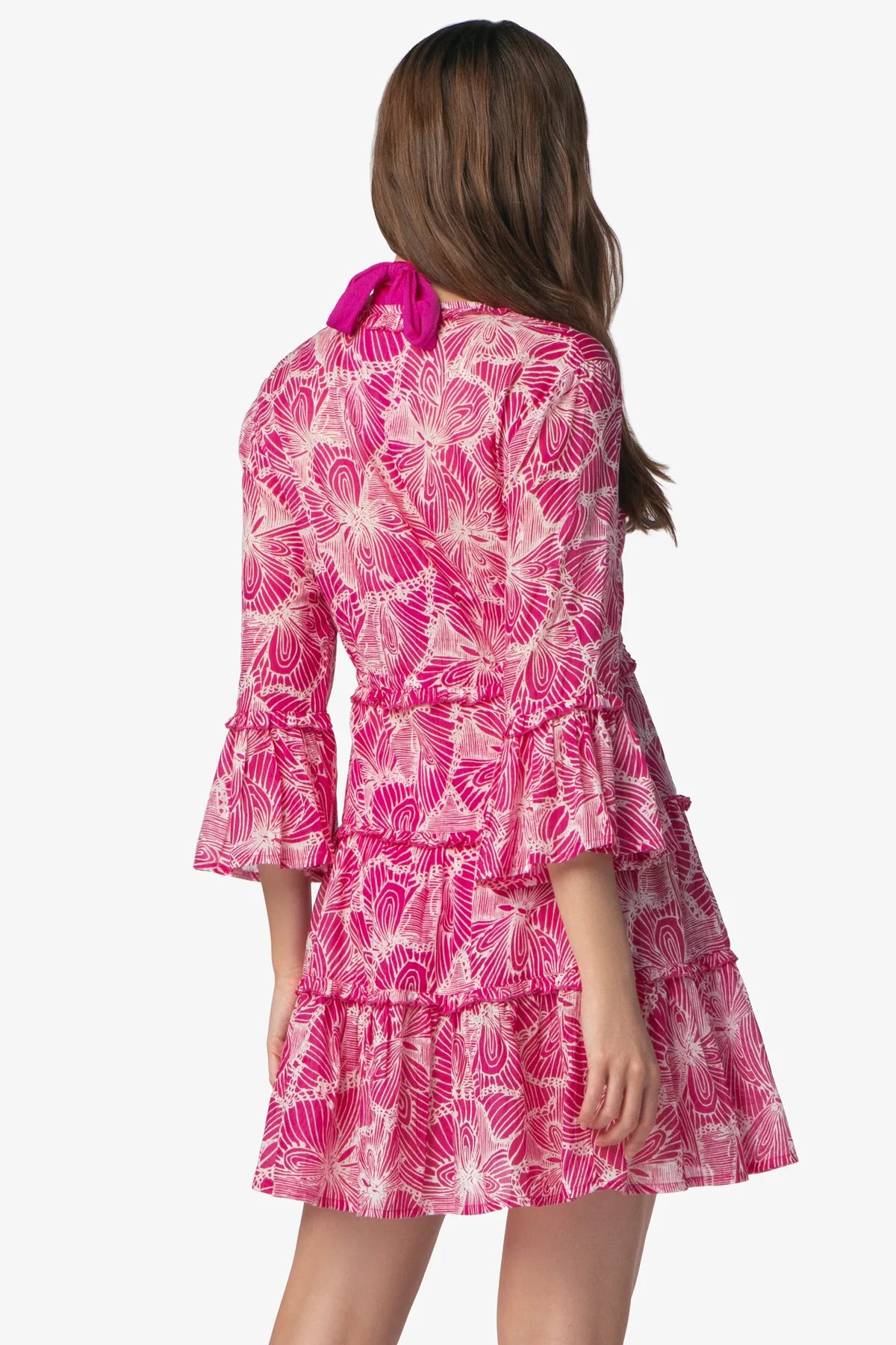 Embracing vintage glamour with a modern sensibility, our Jolie print features a vibrant pink starburst pattern that radiates retro charm. The dynamic design creates a sense of movement and energy, with white accents that brighten and amplify the rich raspberry hue. This playful yet sophisticated print captures the essence of mid-century resort aesthetics while offering a contemporary color story that feels fresh and invigorating.