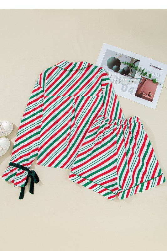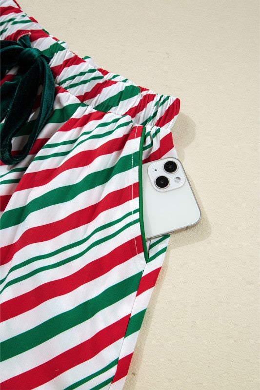 Christmas Velvet Ribbon Knot Silky 2pcs Pajama Set