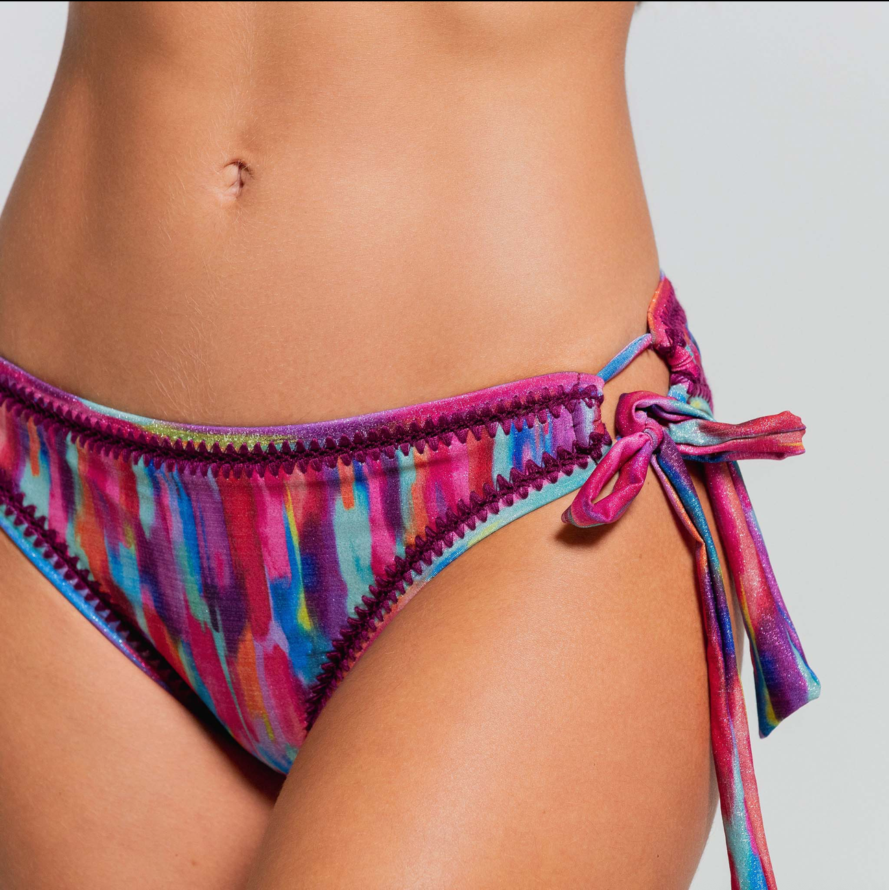 Feminine and artisanal, the Exotic Shade Latin Fit Bottom features handmade stitching details at the borders. Designed in flirty coverage, its shiny metallic fabric adds a radiant finish.