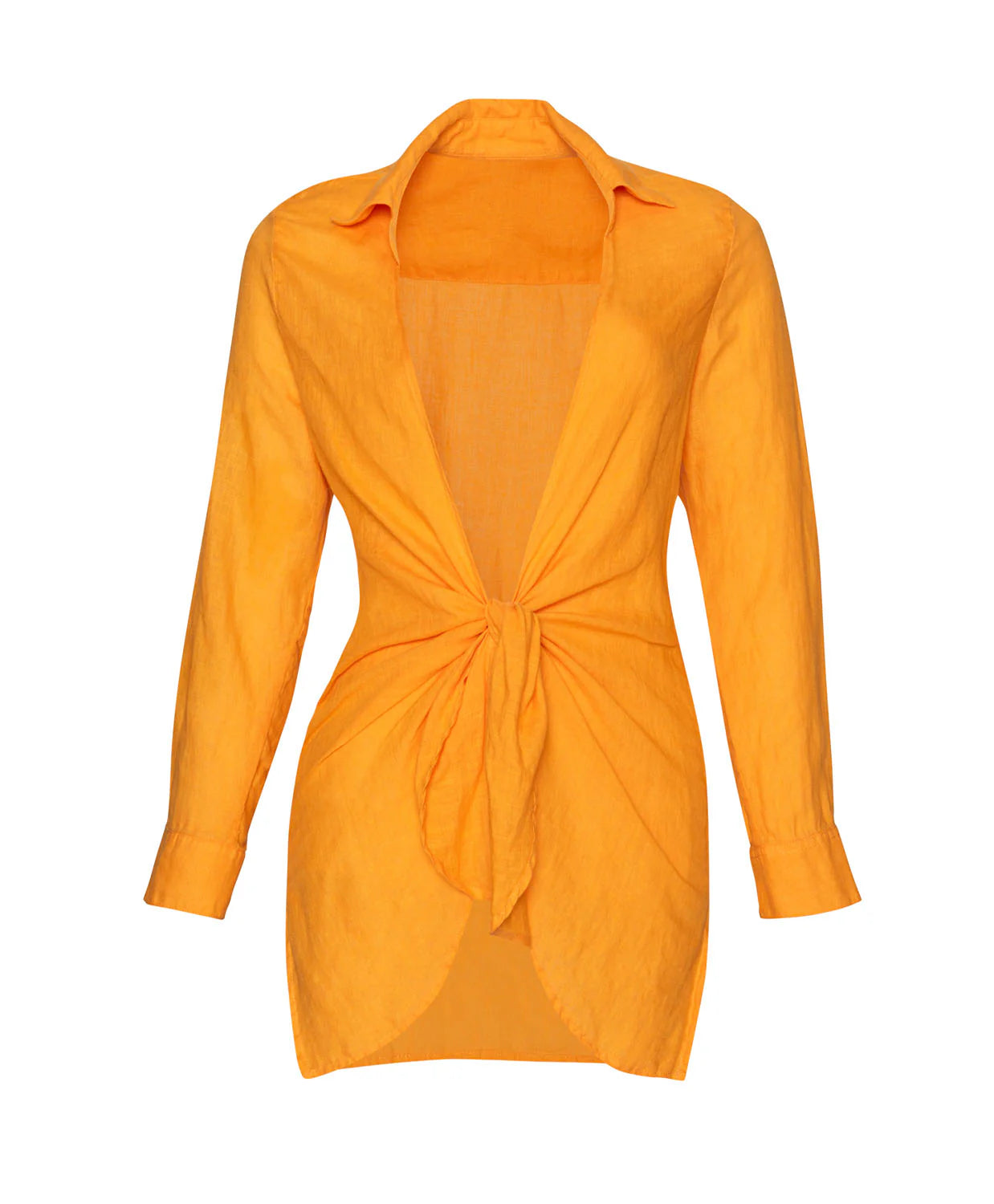 Introducing our Millie Tie cover-up, now in Mango for a vibrant update. This piece reimagines the timeless menswear-inspired shirting silhouette with our soft, luxurious linen. Featuring a convenient tie closure, it's the epitome of effortless beachside chic. Perfect for those seeking a blend of comfort, elegance, and easy style in their beachwear.