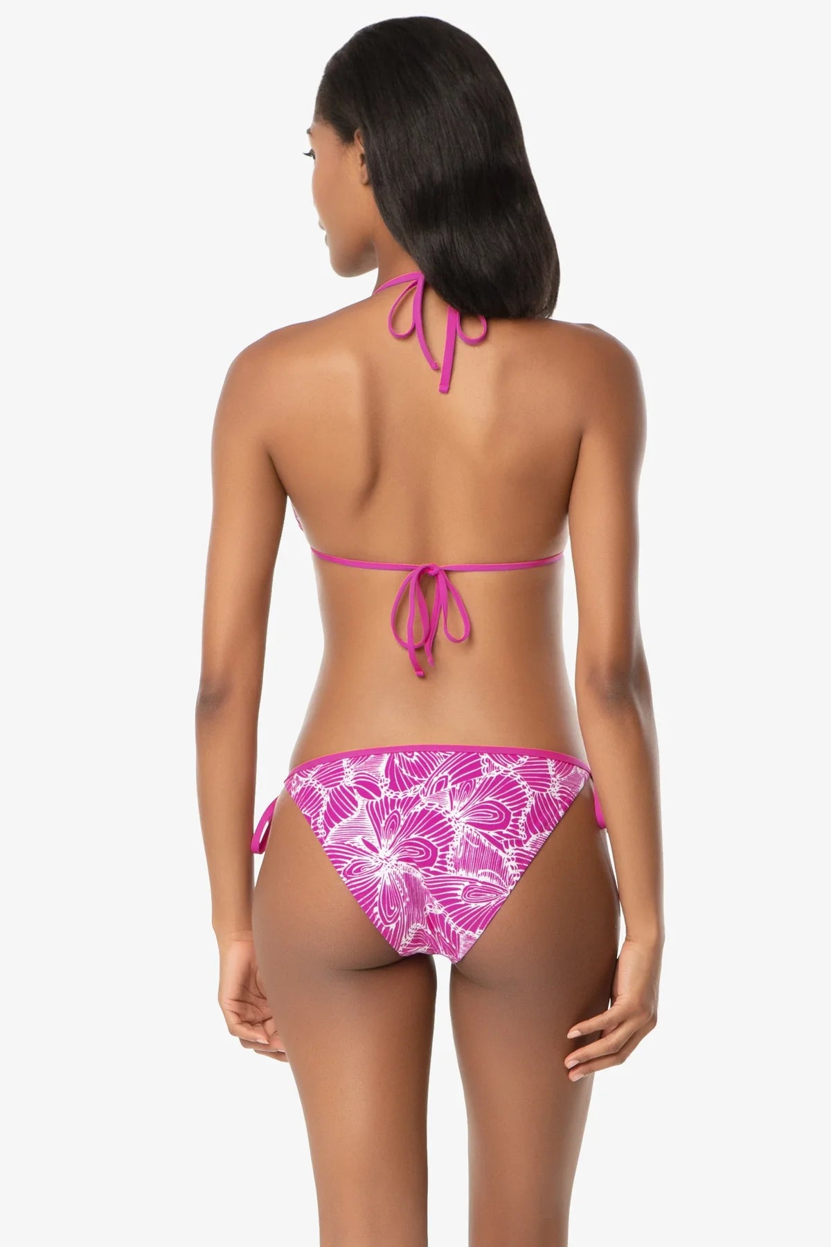 Chic string bikini bottom, fastened with side ties, features contrasting binding for a stylish look.